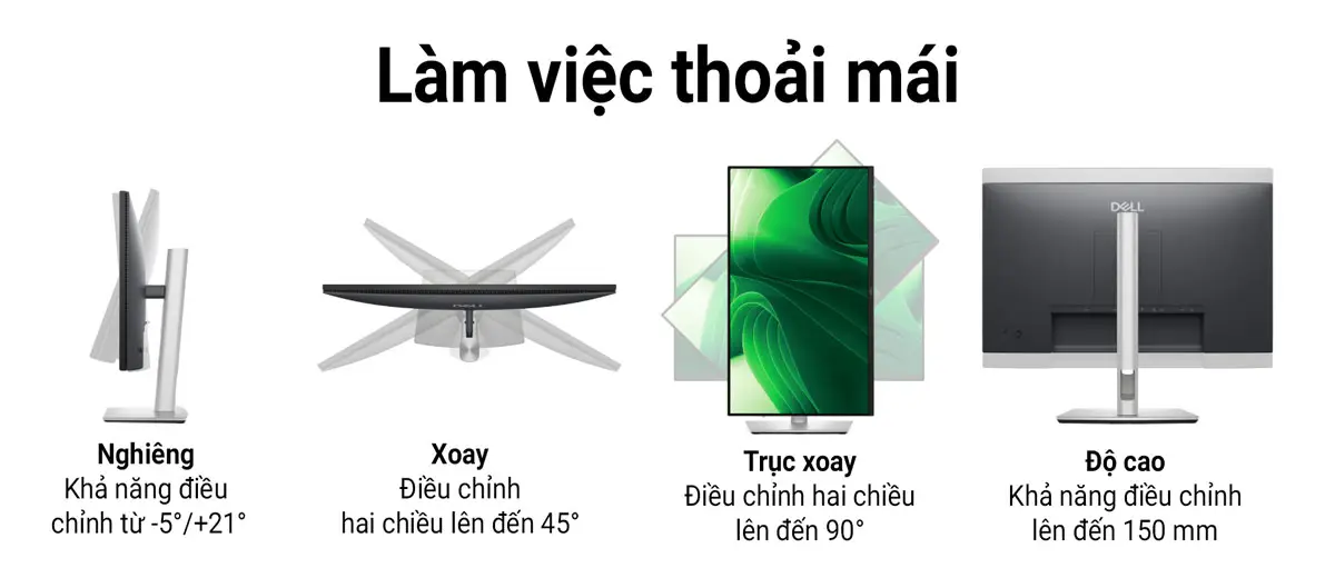 Chân đế của màn hình được thiết kế chắc chắn, cho phép điều chỉnh độ cao, góc nghiêng và xoay linh hoạt, đáp ứng nhu cầu sử dụng đa dạng của người làm văn phòng. Bạn có thể dễ dàng tìm được vị trí lý tưởng để làm việc thoải mái suốt cả ngày dài mà không gây mỏi cổ hay mỏi mắt.
