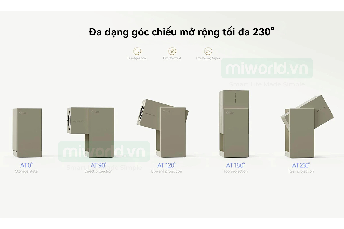 Wanbo Cube 2 Pro sở hữu kiểu dáng mỏng nhẹ, chỉ nặng 1,5kg, dễ dàng mang theo và cất giữ. Với 18 khe thoát khí dọc và chân đế điều chỉnh góc nghiêng 230°, người dùng có thể chiếu ở nhiều vị trí: tường, trần nhà hay thậm chí trên kệ thấp.